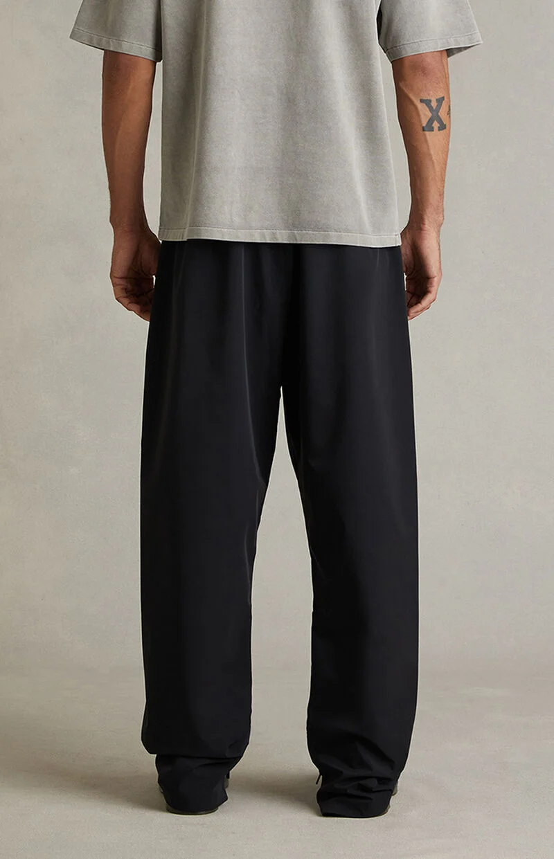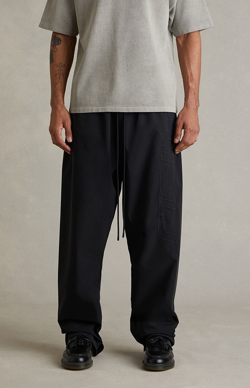 Fear of God ESSENTIALS brings a sporty flair to a versatile streetwear style with the Vintage Black Active Trace Baggy Track Pants, featuring a relaxed baggy fit with straight leg openings and a drawstring waistband for a customizable fit. Finished with side hand pockets, Essentials embroidery down the leg, zipper ankles, and a rubber brand label at the front, they deliver clean, effortless streetwear with signature detailing.