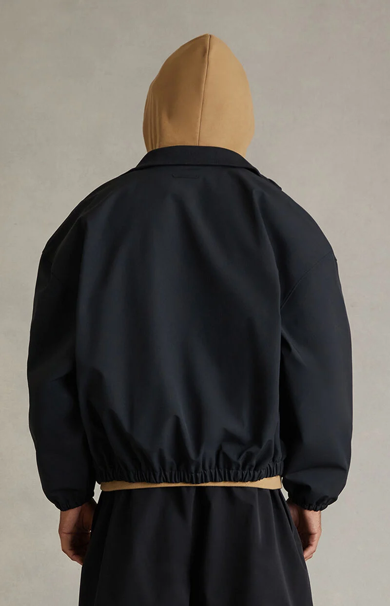 Fear of God ESSENTIALS elevates classic outerwear with the Vintage Black Signature Full Zip Track Jacket, featuring dropped shoulders, a ribbed stand-up collar, and an oversized fit with a breathable mesh lining for all-day comfort. Finished with a full double zipper front closure, Essentials script logo embroidery at the left chest, hidden side seam pockets, elasticized cuffs and hem, and a rubber brand label at the upper back, it delivers clean, modern streetwear with signature detailing.