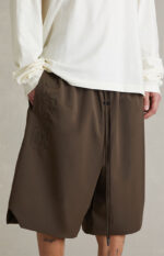 Fear of God ESSENTIALS elevates casual layering with the Brown Active Trace Relaxed Shorts, featuring a relaxed fit, longer inseam, and breathable mesh lining for all-day comfort. Finished with a drawstring waistband, side seam pockets, Essentials embroidery down the sides, small side slits, and a rubber brand label at the front, they deliver clean, effortless streetwear with signature detailing.