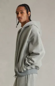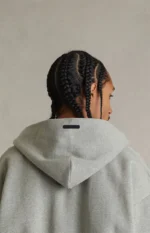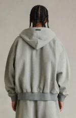 Fear of God ESSENTIALS elevates a layering essential with the Concrete Heather Signature Classic Full Zip Hoodie, designed with dropped shoulders, an oversized fit, and a soft fleece lining for all-day comfort. Finished with an attached hood, full double zipper closure, side hand pockets, Essentials script logo embroidery at the left chest, and a rubber brand label on the hood, it delivers effortless style with signature detailing.