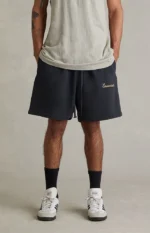 Fear of God ESSENTIALS brings effortless comfort to everyday staples with the Faded Black Training Classic Fit Sweat Shorts, featuring a relaxed fit and soft fleece lining for all-day wear. Finished with a drawstring waistband, side seam pockets, Essentials puff graphic at the hem, and a rubber brand label at the front, they deliver clean, elevated streetwear style with minimal effort.