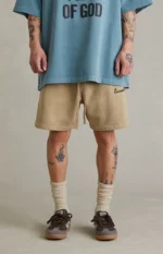 Fear of God ESSENTIALS brings effortless comfort to everyday staples with the Faded Dune Training Classic Fit Sweat Shorts, featuring a relaxed fit and soft fleece lining for all-day wear. Finished with a drawstring waistband, side seam pockets, Essentials puff graphic at the hem, and a rubber brand label at the front, they deliver clean, elevated streetwear style with minimal effort.
