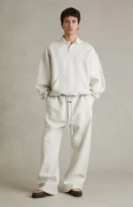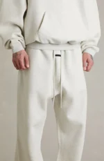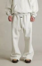 Fear of God ESSENTIALS elevates everyday comfort with the Oatmeal Heather Signature Classic Flare Sweatpants, featuring a baggy, relaxed fit with flared leg openings and a drawstring waistband for easy wear. Finished with side hand pockets, Essentials script logo embroidery at the hip, and a rubber brand label at the front, they deliver clean, effortless streetwear with signature detailing.