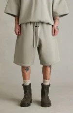 Fear of God ESSENTIALS updates everyday comfort with the Seal Active Trace Relaxed Sweat Shorts, featuring a relaxed fit, longer inseam, and soft fleece lining for effortless wear. Finished with a drawstring waistband, side seam pockets, Essentials embroidery at the hip, contrast piping on the back, and a rubber brand label at the front, they deliver clean, elevated streetwear with subtle signature detailing.