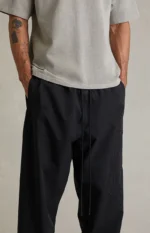 Fear of God ESSENTIALS brings a sporty flair to a versatile streetwear style with the Vintage Black Active Trace Baggy Track Pants, featuring a relaxed baggy fit with straight leg openings and a drawstring waistband for a customizable fit. Finished with side hand pockets, Essentials embroidery down the leg, zipper ankles, and a rubber brand label at the front, they deliver clean, effortless streetwear with signature detailing.